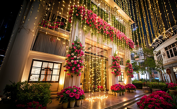 Wedding decor focuses on creating a romantic, elegant, and memorable atmosphere for your big day. Decorative lighting for stage and entrance.